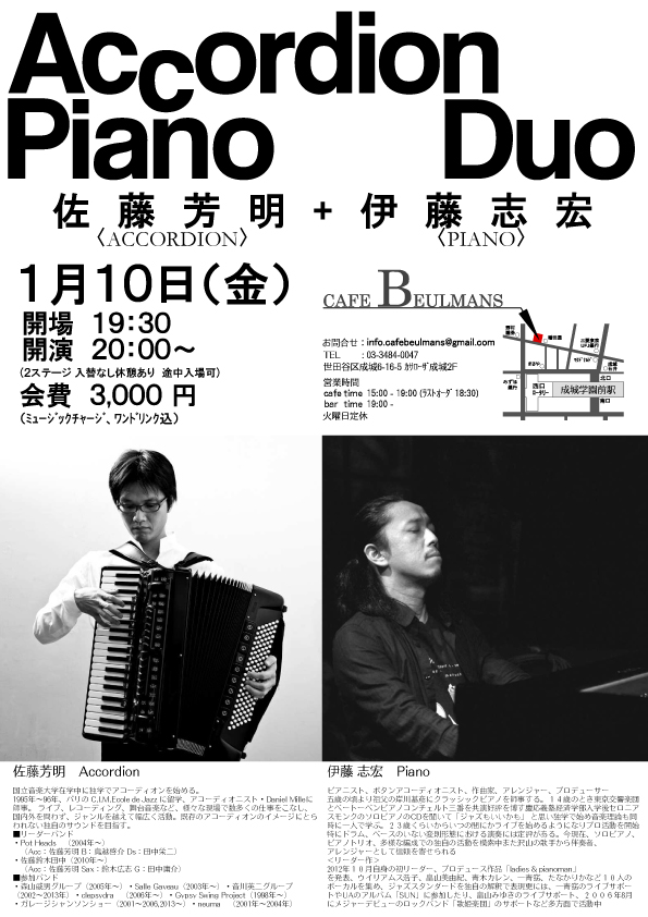 | 2014年1月10日(金) ●佐藤芳明(acc) ■Accordion Piano Duo | ||