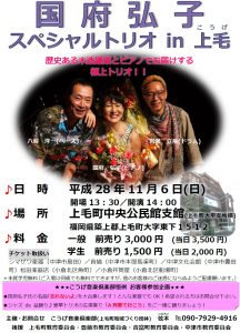 | 2016年11月6日(日) ●国府弘子(pf) ■国府弘子スペシャルトリオライブn 上毛 | ||