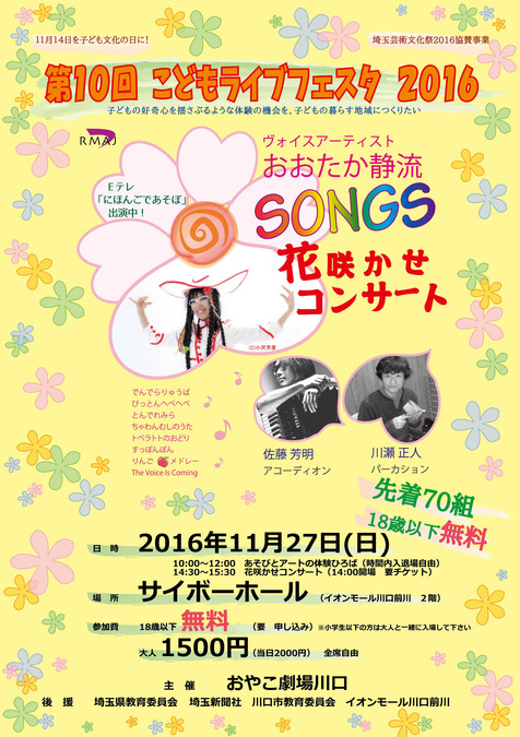 | 2016年11月27日(日) 【RMAJ企画】 ■おおたか静流 SONGS 花咲かせコンサート | ||