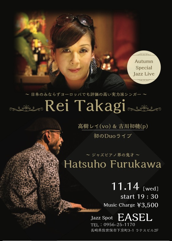 | 2018年11月14日(水) ●古川初穂(pf) ■高樹レイ Autumn Special Live | ||