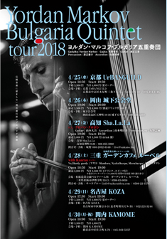 | 2018年4月26日(木) ●佐藤芳明(acc) ■ヨルダン・マルコフ・ブルガリア五重奏団 tour2018 | ||