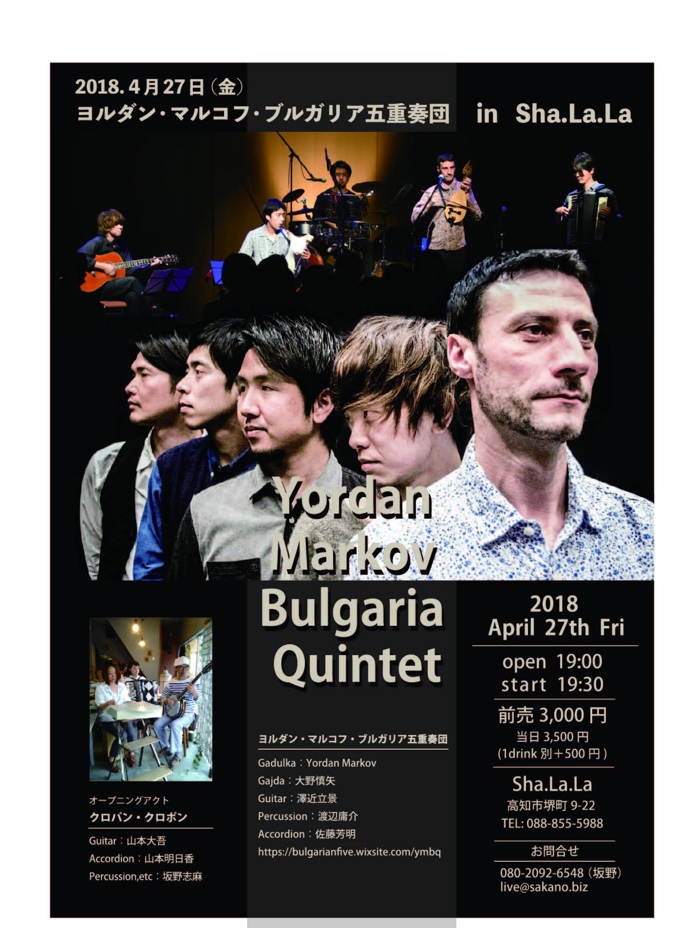 | 2018年4月27日(金) ●佐藤芳明(acc) ■ヨルダン・マルコフ・ブルガリア五重奏団 tour2018 | ||