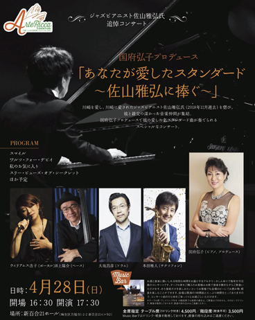 | 2019年4月28日(日) ●国府弘子(pf) ■あなたが愛したスタンダード〜佐山雅弘に捧ぐ〜 | ||