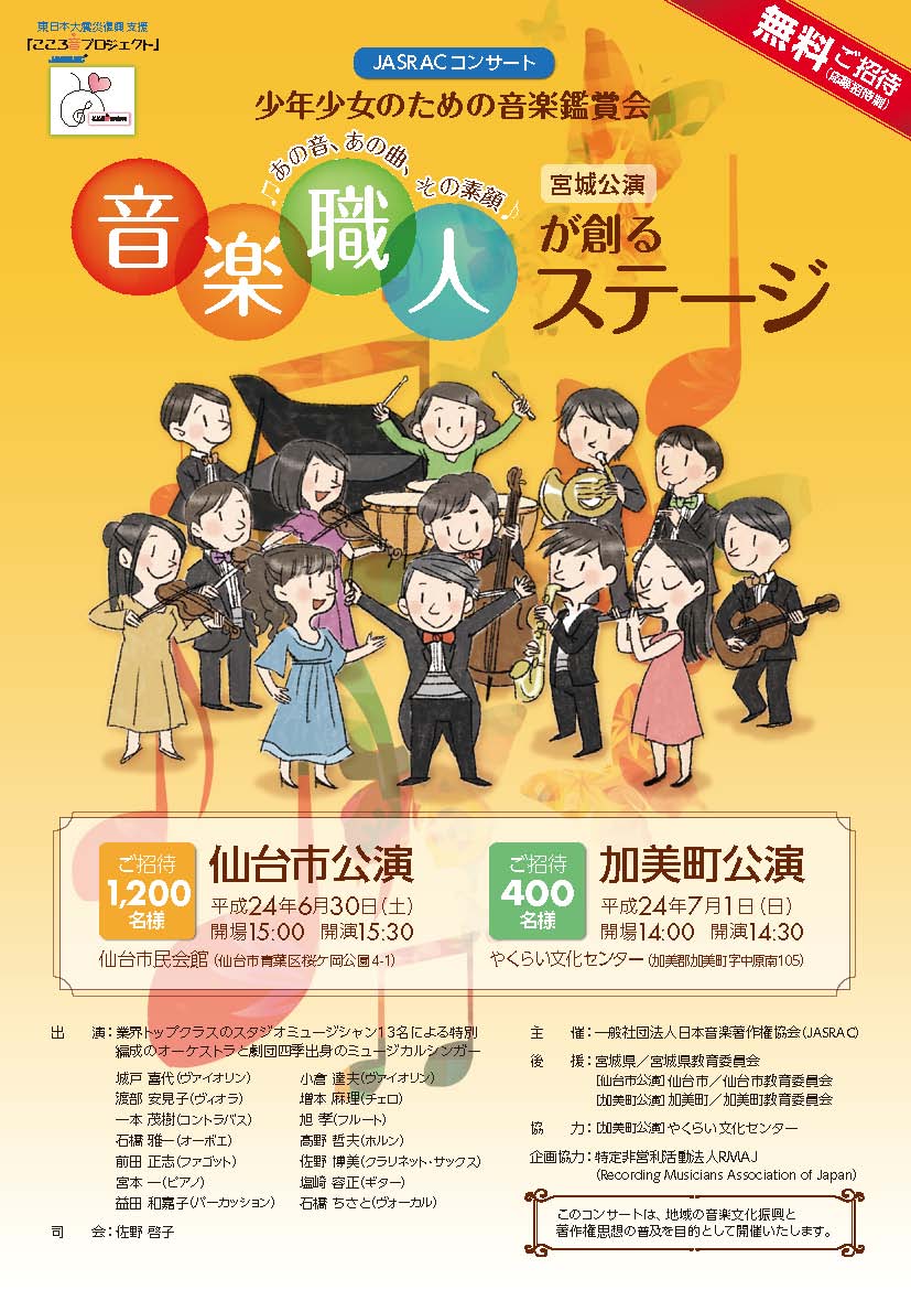 | 2012年6月30日(土) ■RMAJ企画 ■JASRACコンサート 仙台市公演■ | ||
