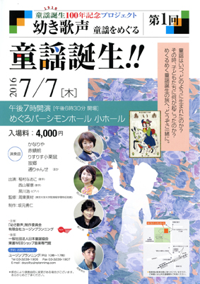| 2016年7月7日(木) ●稲村なおこ(vo) ■童謡誕生100年記念プロジェクト 第1回 | ||