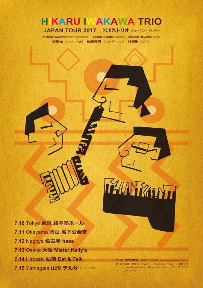 | 2017年7月12日(水) ●佐藤芳明(acc) ■岩川光トリオ・ジャパン・ツア―2017 | ||