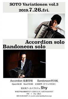 | 2019年7月26日(金) ●佐藤芳明(acc) ■SOTO Variationen Vol.3 | ||