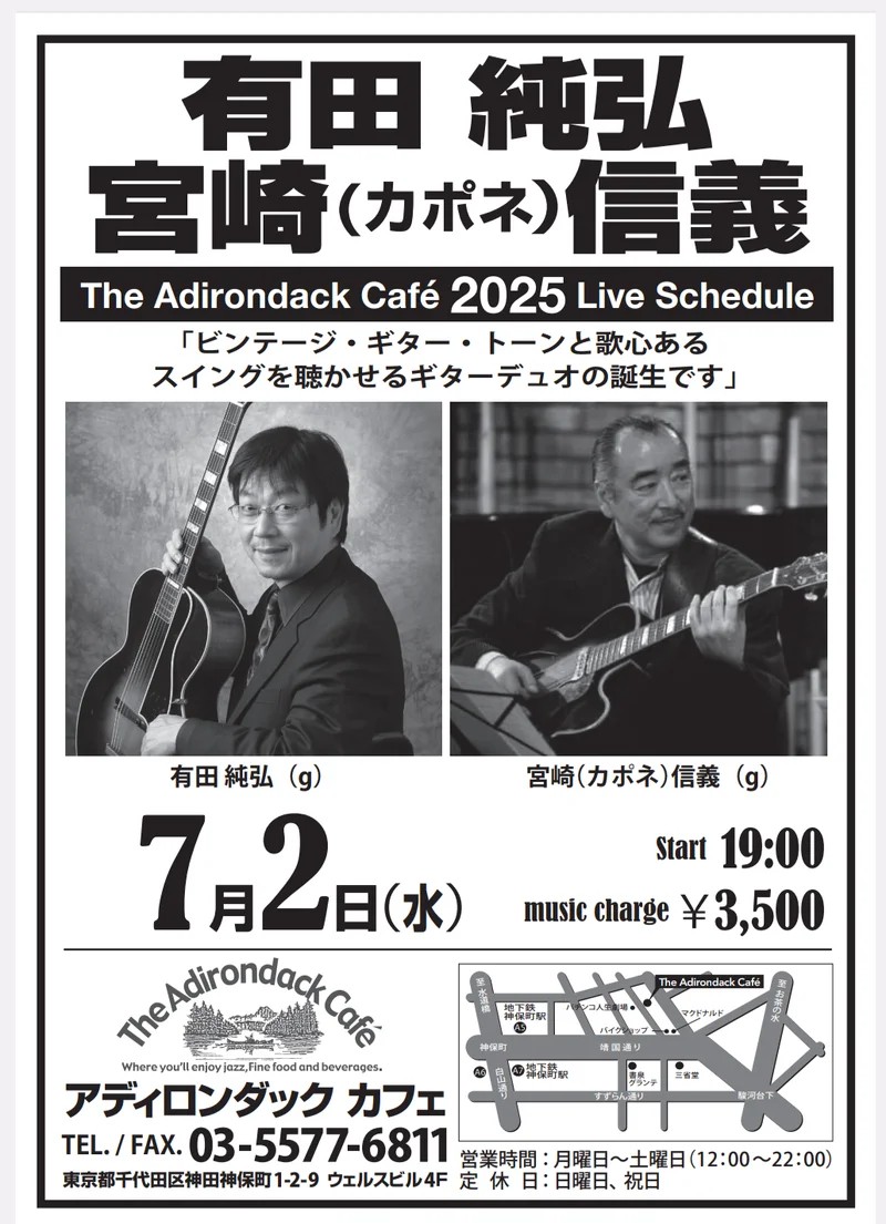 | 2025年7月2日(水) ●有田純弘(gt) ■Jazz Guitar Duo「ARI-CAPONE」 | ||