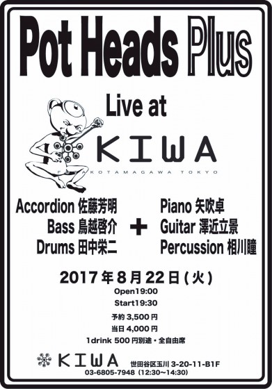 | @ 2017”N8ŒŽ22“ú(‰Î)@@œ²“¡–F–¾(acc)@¡Pot Heads Plus | ||