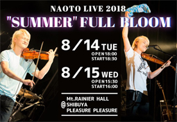 | 2018年8月15日(水) ●NAOTO(vn) ■NAOTO LIVE 2018 "SUMMER" FULL BLOOM | ||