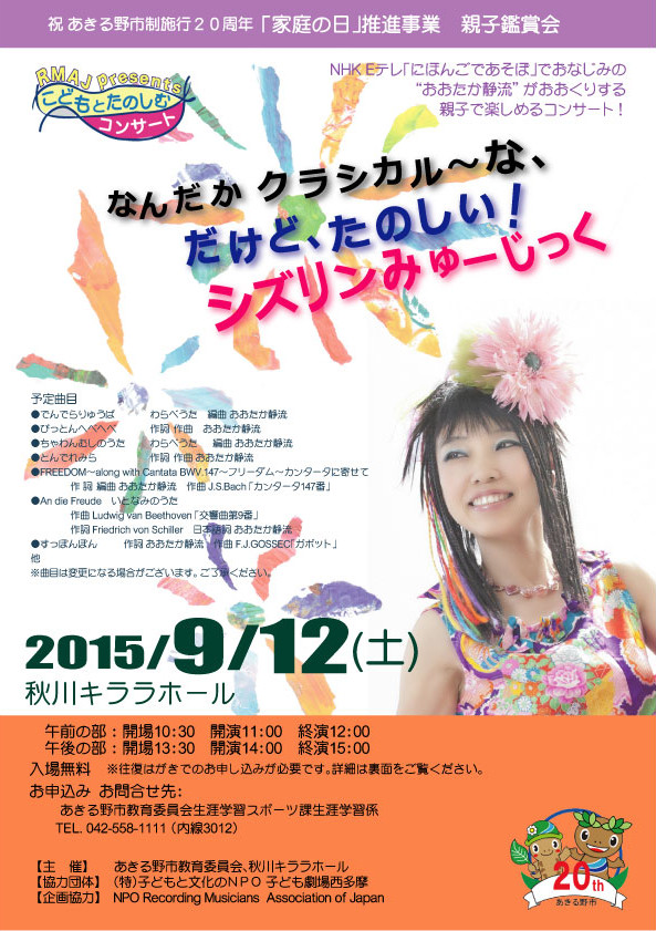 | 2015年9月12日(土) 【RMAJ企画】■ なんだかクラシカル〜な、だけど、たのしい!シズリンみゅーじっく | ||