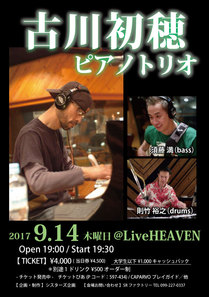 | 2017年9月14日(木) ●古川初穂(pf) ■古川初穂ピアノトリオ『九州縦断ツアー』秋旅2017 | ||