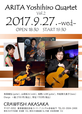 | 2017年9月27日(水) ●有田純弘(gt) ■ARITA Yoshihiro Quartet Vol.2 | ||