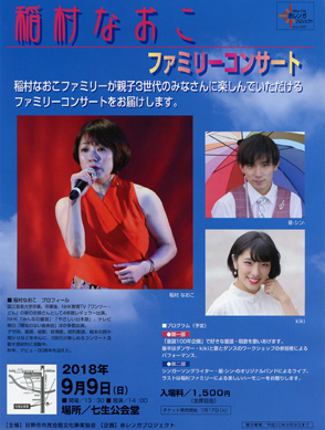 | 2018年9月9日(日) ●稲村なおこ(vo) ■稲村なおこ ファミリーコンサート | ||