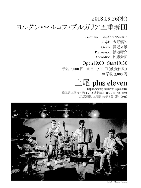 | 2018年9月26日(水) ●佐藤芳明(acc) ■ヨルダン・マルコフ・ブルガリア五重奏団 | ||