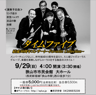 | 2019年9月29日(日) ●タイムファイブ(vo) ■Favorite Collection | ||