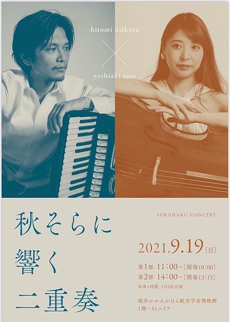 | 2021年9月19日(日) ●佐藤芳明(acc) ■秋そらに響く二重奏 | ||