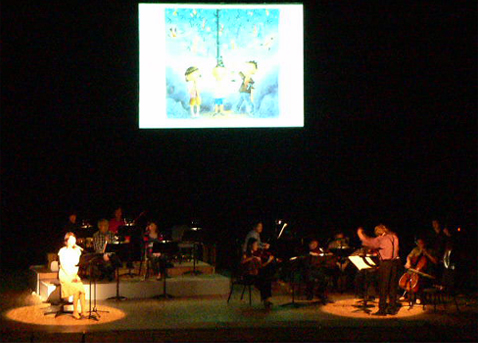 今回は、ヴォーカルに劇団四季出身の石橋ちさとさんを迎え、ミュージカルナンバーの歌とダンスの演出も加え、また、【音楽&朗読】では絵本の絵そのままをスライド映写し、さらに劇伴をリアルに再現。