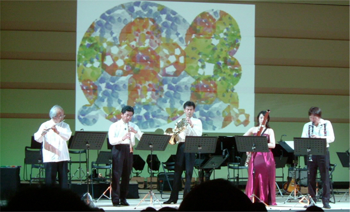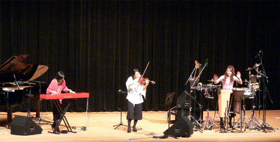 本格派インストゥルメンタルユニットとして活躍中のオリジナルを中心に、迫力とセンス輝く20曲におよぶプログラムに、はにかみやの中学生も大いに盛り上がり大好評。