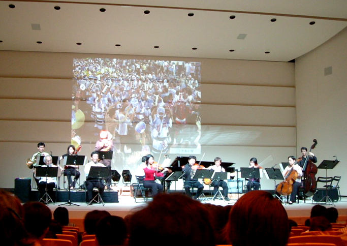 「劇伴」のイメージを表現した「音楽&朗読」では、絵本の絵も映写し、加えて、アンコールでは阿波踊りの「祖谷の粉挽き歌」アレンジ曲を映像と共に楽しんで頂く、サービス盛りだくさんのプログラム。