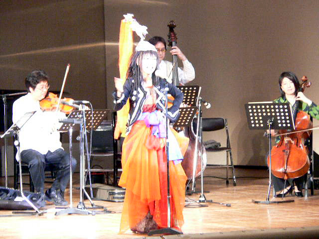 これがなかなかの腕前で、楽器が奏でる音によって絵本の絵が変わったり、いやな音を出すと絵が無くなってしまったりするマジックは、コンサートにぴったりの感でした。